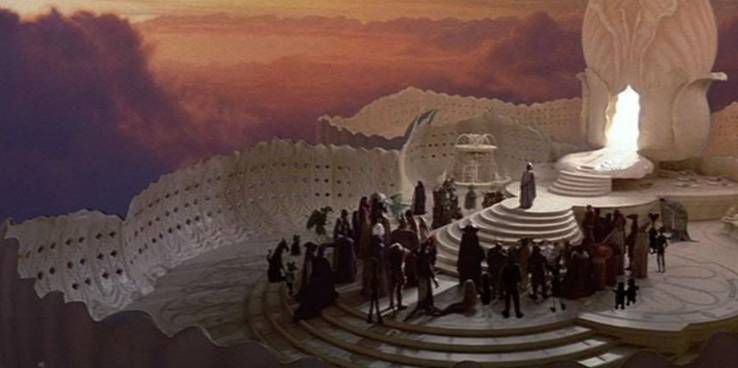 O mais belo desses cenários sem dúvida é a majestosa Torre de Marfim, onde a Imperatriz-Criança vive com sua corte. É possível vislumbrar a diversidade dos povos que compõem a terra de Fantasia, incluindo homens-pássaros, gnomos baixinhos e pessoas de duas cabeças. Infelizmente, eles não fazem muita coisa na história, exceto se reunir para escolher um herói capaz de carregar o amuleto Auryn.